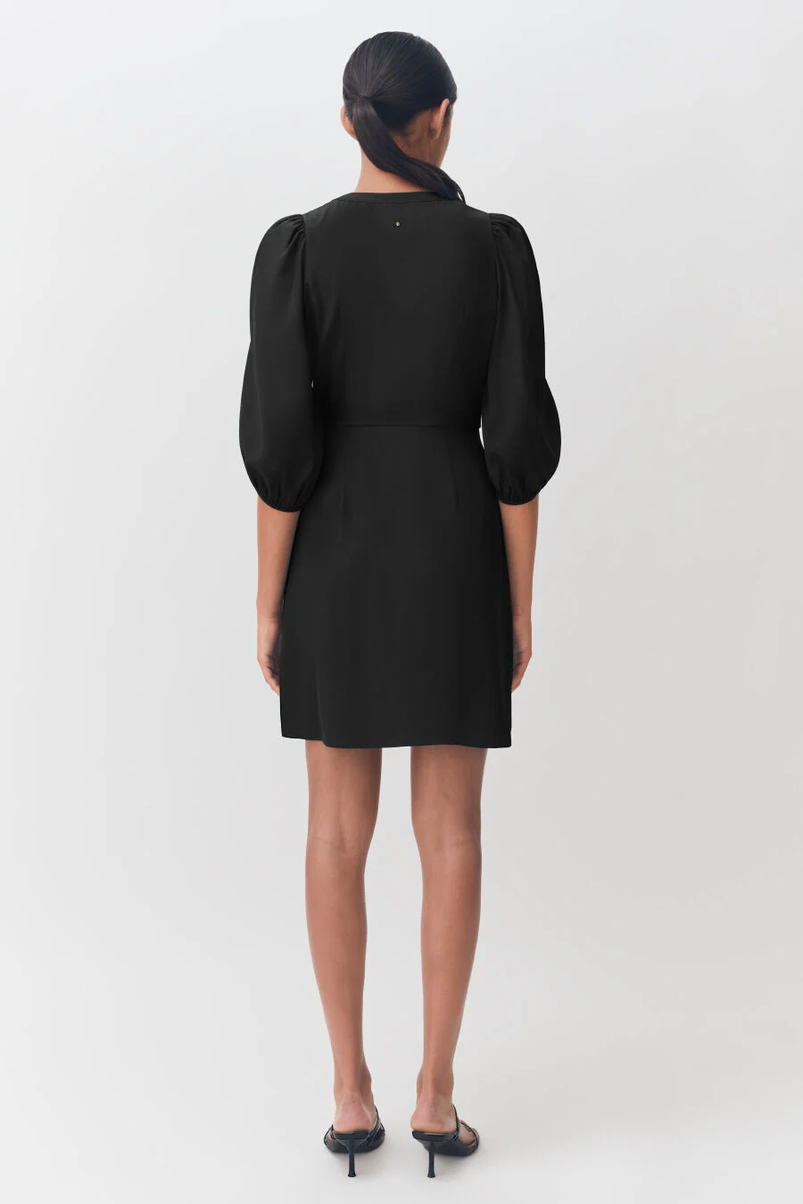 A modern reimagination of the classic wrap dress for your seasonal outings, cut in a sensual mini length in an easy wrap silhouette.